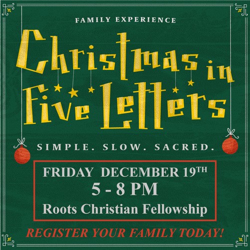 Roots Christian Fellowship is a place where people can meet Jesus, believers can engage in life-giving community, and everyone is welcome. We believe in creating a space where people can have authentic encounters with Christ, discover their gifts and use them for Him. Join us for our Sunday services!