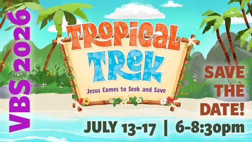 We’re excited to announce the dates for this year’s Vacation Bible School—July 13 through 17. Our theme is Tropical Trek, and it’s going to be an incredible week of fun, faith, and adventure for our kids.