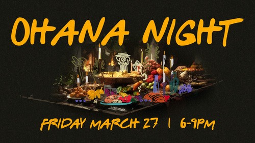 Mark your calendars for our next Ohana Night on Friday, March 27, from 6 to 9pm. We’re shifting Ohana - our churchwide potluck - to a few Friday nights this year, and we’re looking forward to gathering as a church family.