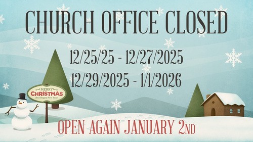 Just a quick schedule update: the church office will be closed Thursday and Friday this week of Christmas, and Monday through Thursday next week. There will be no Youth Group or Wednesday night service on New Year’s Eve.