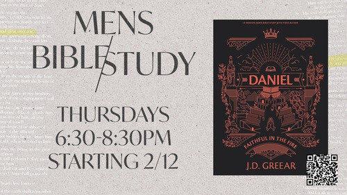 Men, we’re excited to let you know about a new Men’s Bible Study, "Daniel: Faithful in the Fire", starting on Thursday, February 12. It will meet weekly from 6:30 to 8:30pm and run through April 2.